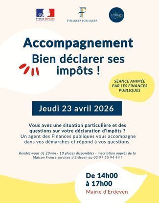 La Maison France Services d’Erdeven organise, en partenariat avec la Direction générale des Finances publiques, des rendez-vous d’accompagnement personnalisés pour vous aider à effectuer votre déclaration d’impôts.
