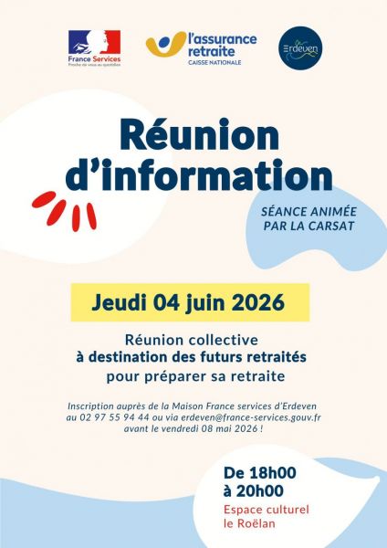 Inscription auprès de la Maison France services d'Erdeven avant le vendredi 08 mai : erdeven@france-services.gouv.fr ou au 02 97 55 94 44