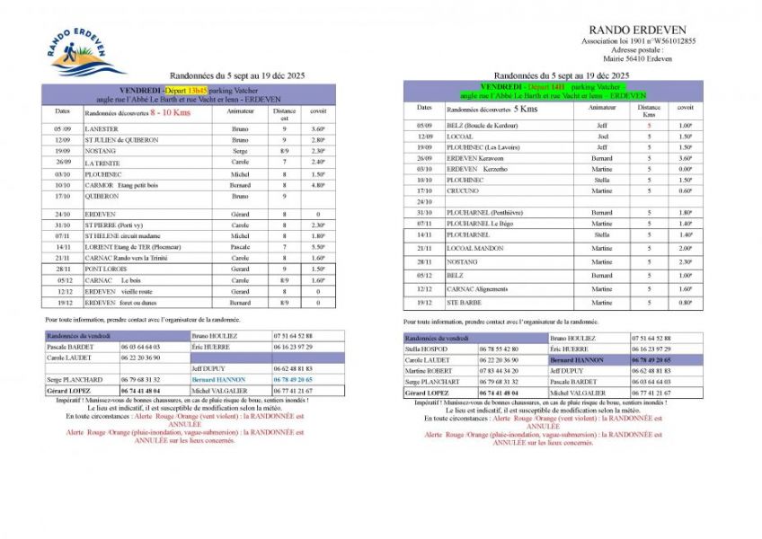 Vous pouvez consulter toutes les randonnées ci-dessous ou bien télécharger le planning en version PDF :
